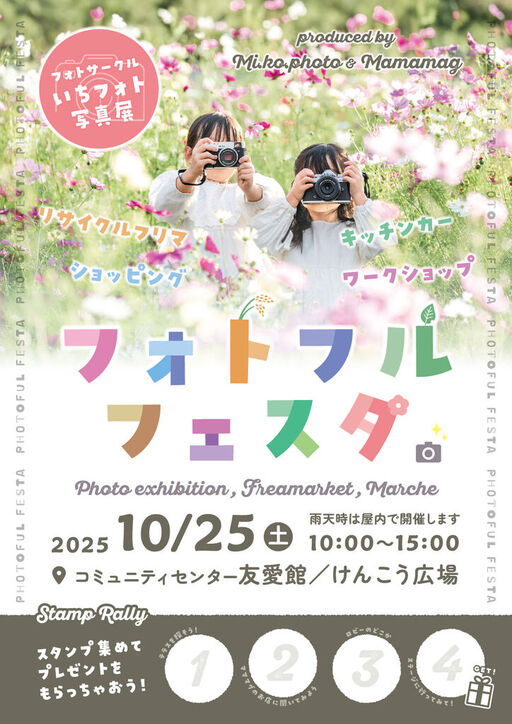 写真サークル『いちフォト』の写真展をはじめ、キッチンカー、ワークショップ、フリーマーケット、お米の販売を行います!