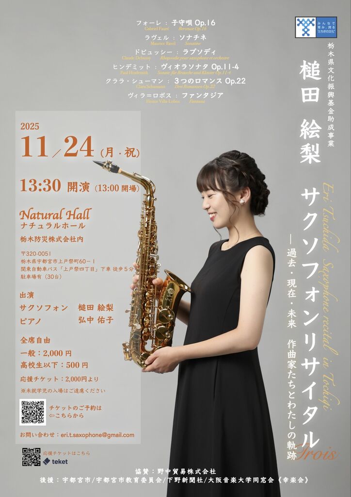 槌田絵梨サクソフォンリサイタルTrois ー 過去・現在・未来 作曲...