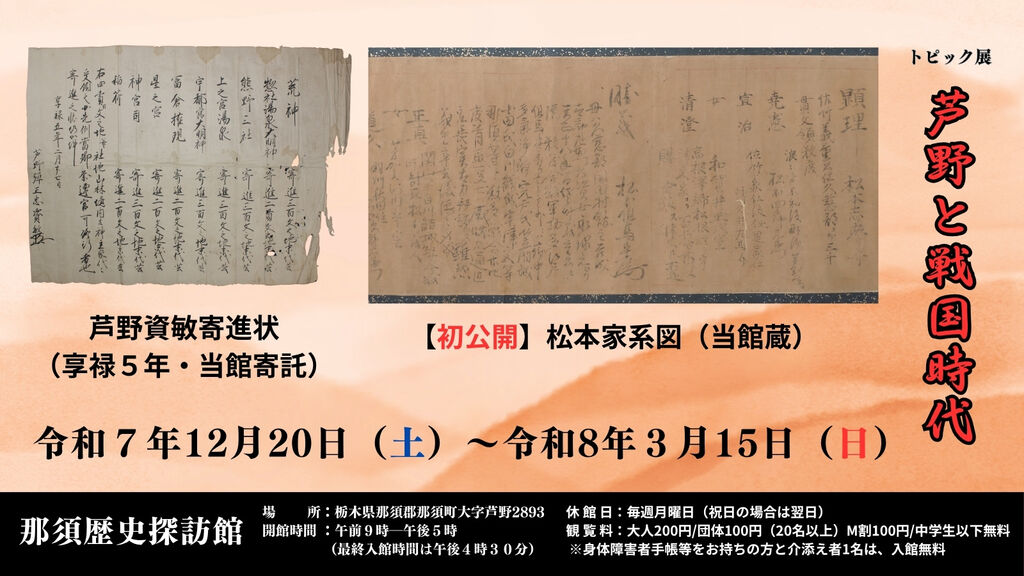 芦野地区の戦国時代の様相を史料や軍記物、系図などから探り、芦野氏や原の七人についても紹介いたします。