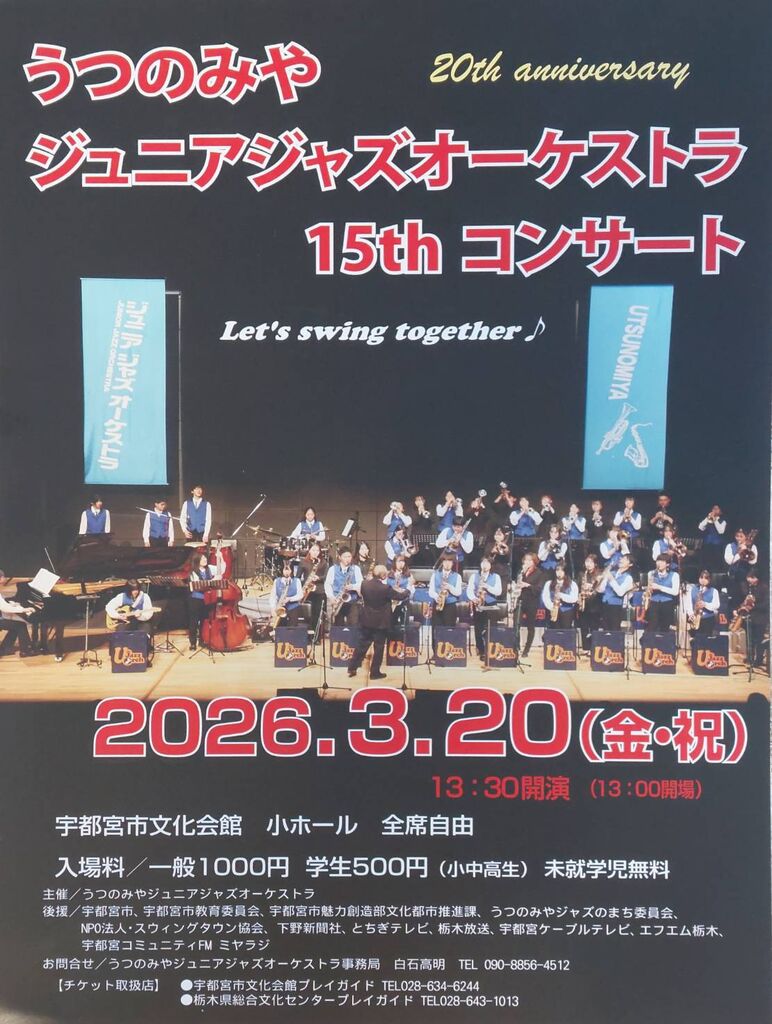 うつのみやジュニアジャズオーケストラ事務局 担当: 白石高明 |
