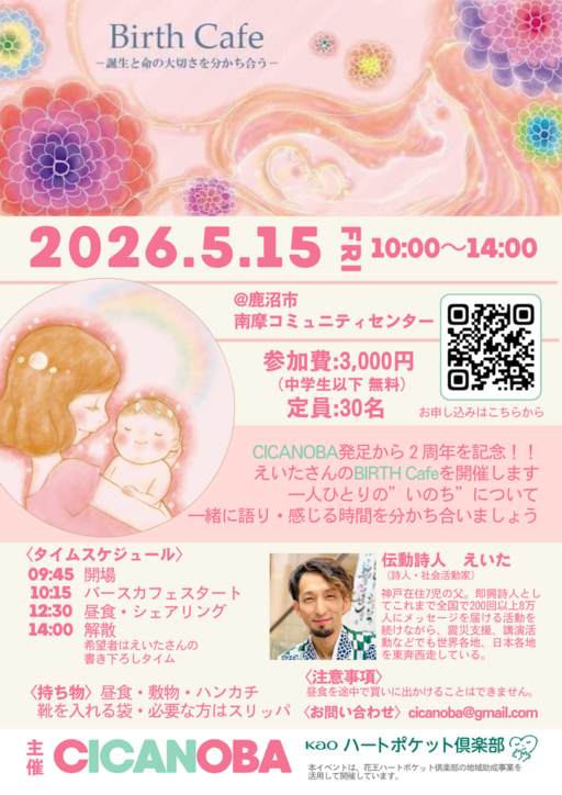 バースカフェは『いのちの大切さ』を分かち合うことを目的に、『誕生』と『胎内記憶』についての対話による愛いっぱいの参加型のイベントです。