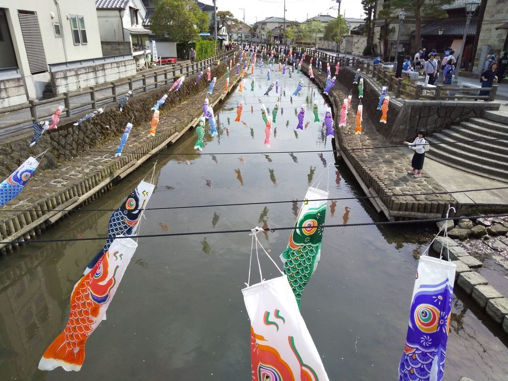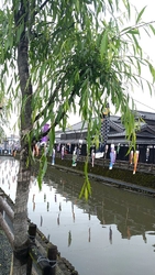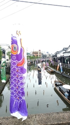 気持ちよく風になびいている鯉のぼりと巴波川の景色をお楽しみください。