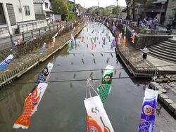 栃木市の春の風物詩「うずまの鯉のぼり」