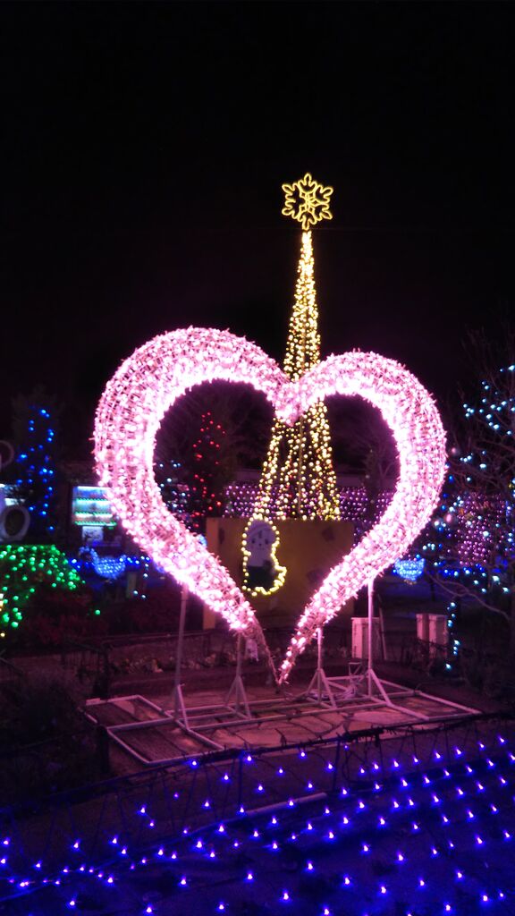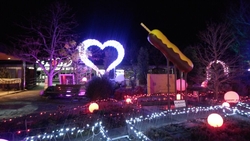 大きなハート、約5mのツリー、さのまる、いもフライのオブジェは人気のフォトスポット