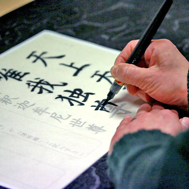 お寺の書道教室では、超達筆な副住職が優しく丁寧に教えてくれます。花まつりの時期に桜を愛でながらJAZZコンサートも楽しめます!