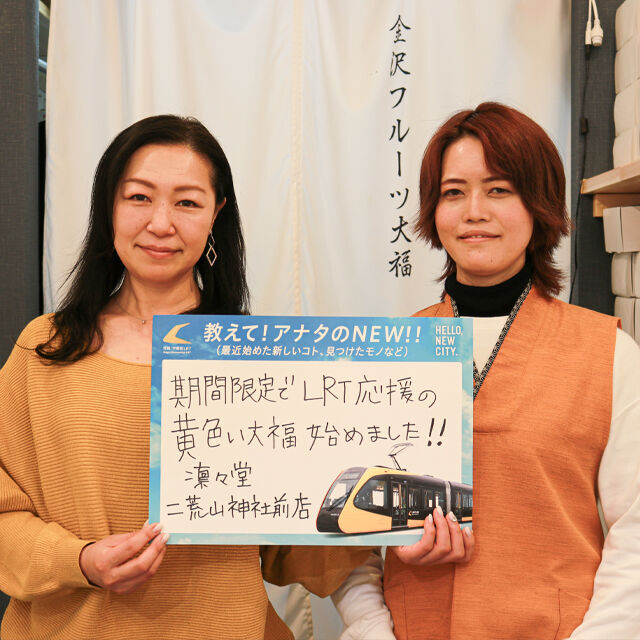 ライトライン(LRT)のシンボルカラーである、鮮やかなイエローの生地をまとったスペシャル大福が登場!お馴染みのみかんやいちごなどの絶品フルーツも、いつもと違った楽しみ方で召し上がれ♪