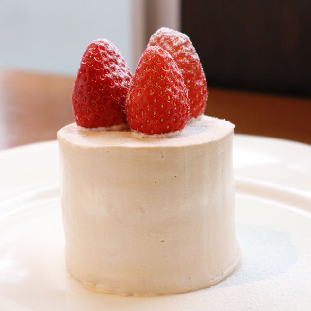 いつも頑張っているアナタへのご褒美。とちおとめを一番おいしくいただける季節に、お一人さま用贅沢ホールケーキが登場。甘さ控えめでペロリと完食できちゃいます♪アイボリーカラーのクリームでナチュラルに楽しめるところも◎!