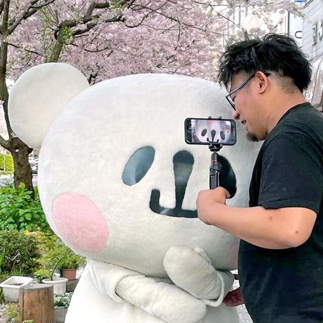 ゲリラ的に出没する、おやまくま。マネージャーと息を合わせて小山市を盛り上げます。
