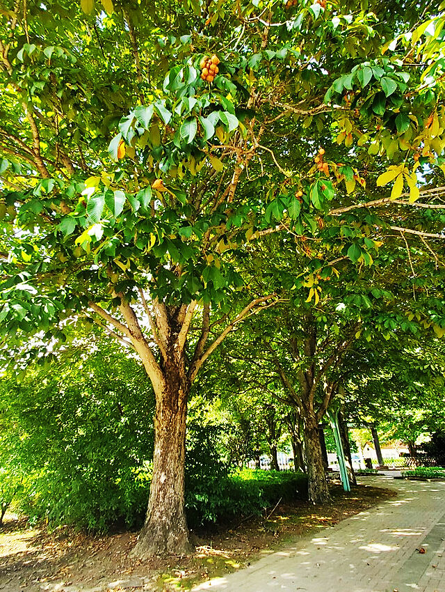 とちぎわんぱく公園の正門の栃の木から落ちている栃の実に目と口とほっぺを書けば、とちまるくんになりますよ!
