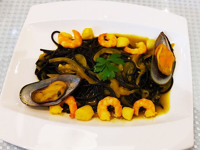 パスタは麺が黒いので口の中は黒くなりません(^o^)