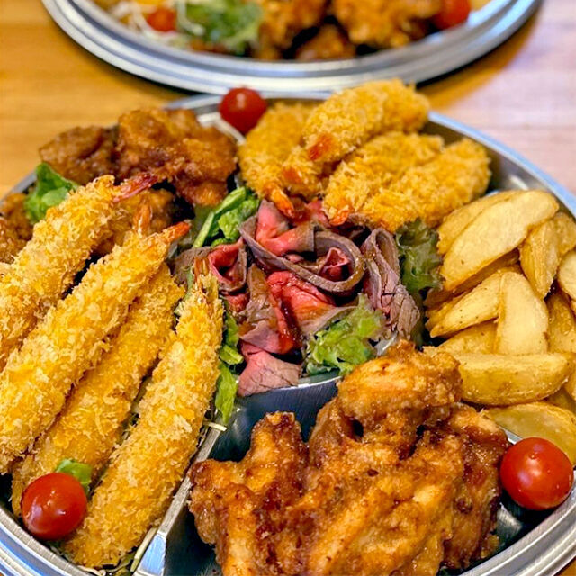 つやつやのごはんに、大きくて食べ応えあるからあげ、ふっくら厚みのあるハンバーグとポテト★ちょっとだけお野菜も入ったコチラは、パパやママとおそろいのおかずで楽しめちゃうお弁当です。手作りにこだわって作っているので、豚挽き肉を手ごねで作るハンバーグは数量限定!なくなり次第終了の人気メニューで、ケチャップ&ソースの特製ソースでごはんが止まりません♪生姜・ニンニク・醤油などでしっかりとした味を付けたからあげは、クチコミでもオイシイと高評価!リーズナブルな値段はオープンからずっと変わらない据え置き価格。お子様弁当だけは値上げせずに…と頑張って提供してくださっている優しさに感動です!