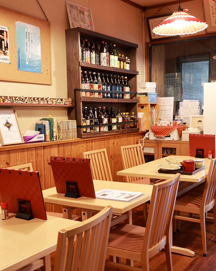 そば屋のカツ丼やカレーのセットも魅力ですが、はずせないのが元祖といわれる大根そば!食糧難の時代にお腹を満たすために考案され、今では愛される地元の味です。そばと同じ太さに削った大根を茹でて冷やし、そばと合わせて盛り付けます。シャキシャキの食感と一体感が◎。毎朝カツオを削りそばを打つ、丁寧な仕事は初代から3世代へと受け継がれています。