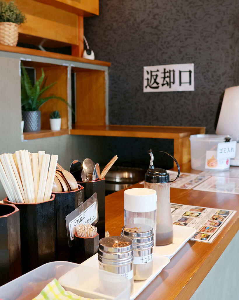 食券を購入しカウンター席へ。懐かしむ人にも初めての人にも、お腹と心を満たしてくれる一杯が湯気とともに現れます。麵とつゆは中沢製麺から仕入れ、長年親しまれたあの味が復活!つゆたっぷりのひたひたな天ぷらと、爽やかな岩下の新生姜が人気のトッピングです。足利店だけの新たな魅力も加わり、今までもこれからもファンの心をつかんで離しません。