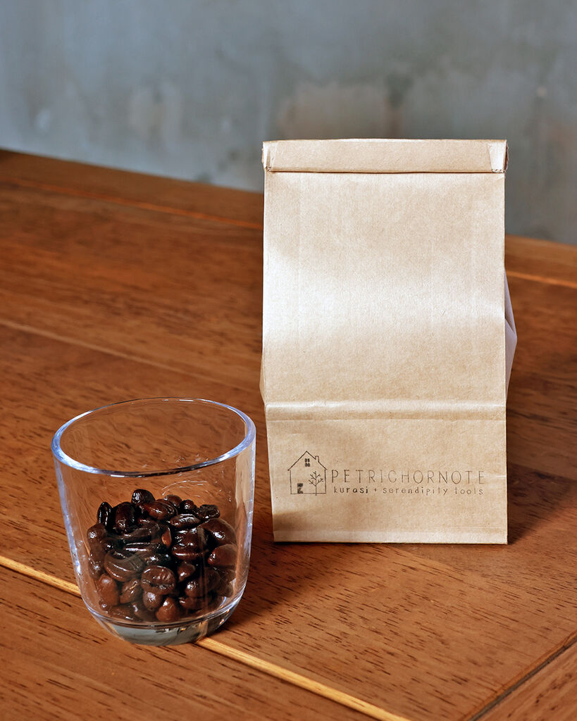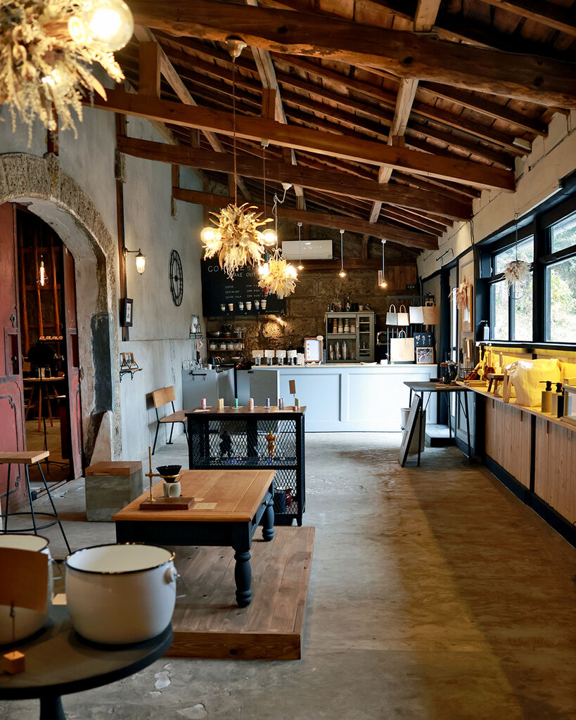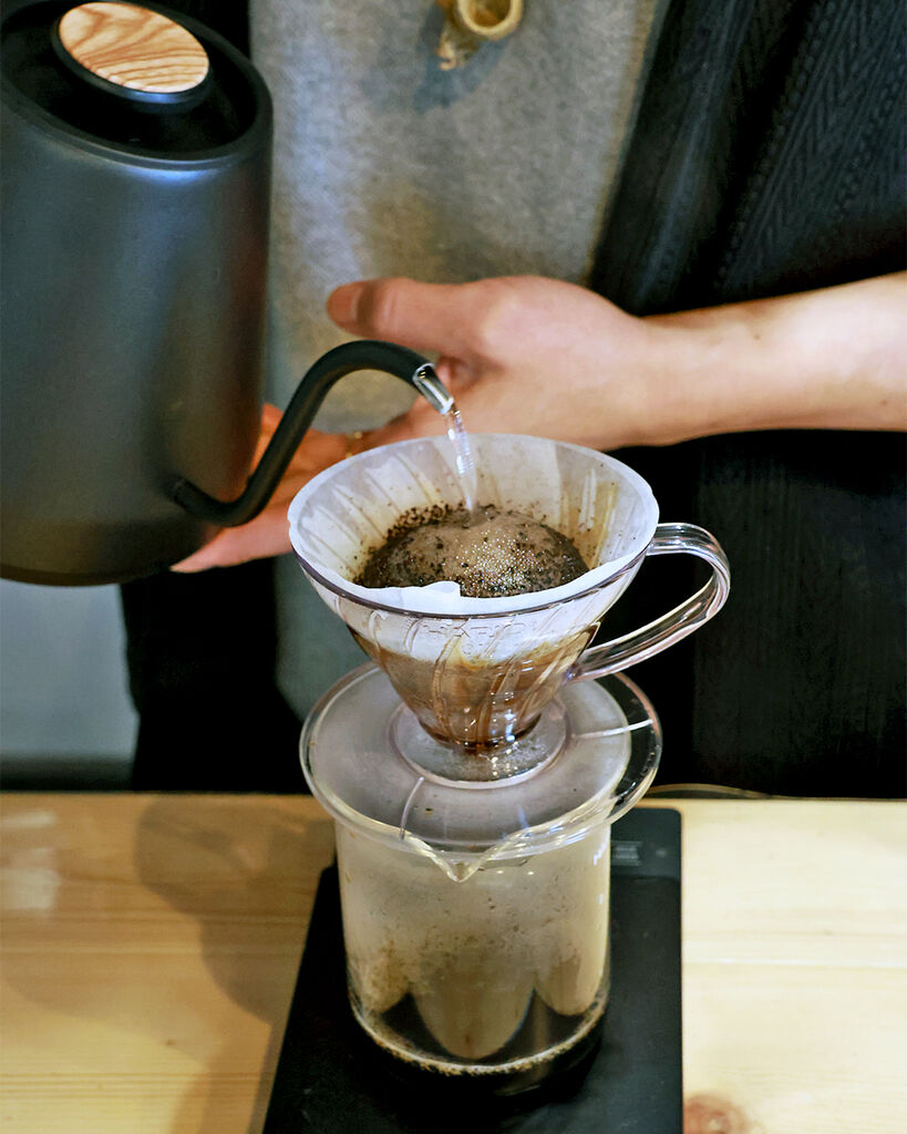 築70年の米蔵を改装した、深煎り好きの店主が営むコーヒー店。一粒ずつ豆を選別するハンドピックを2回行うことで雑味をそぎ落とした「月と.ブレンド」は、しっかりとしたコクと苦みの中にすっと抜ける軽やかさが共存する、深煎りのイメージが変わる一杯。店内には深煎りを中心に3〜5種類の豆が並び、イートインもOK。古物や石鹸が寄り添う幻想的な明かりの下で、深煎りの奥行きとやさしさを感じて。