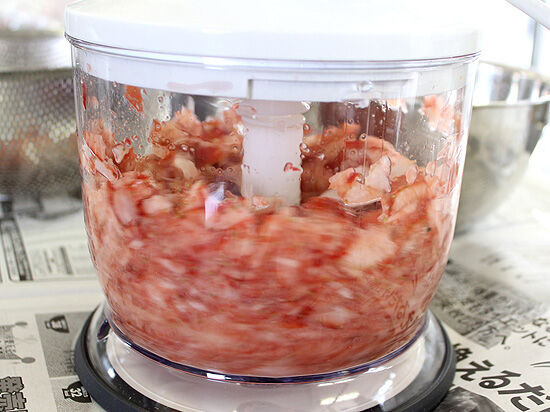 和氣さん「よく水を切ったら、ミキサーへ投入!」