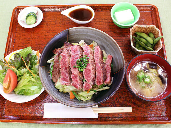 那須和牛 ステーキ丼 … 1,900円(みそ汁・サラダ・小鉢・漬物・デザート付き)