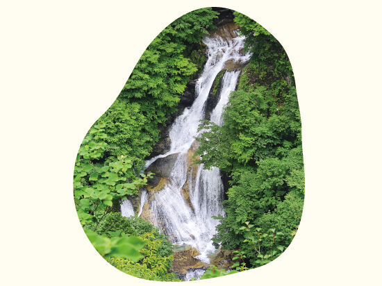 日光三名瀑の一つ霧降ノ滝。水が岩に当たり飛び散って流れ落ちるさまは、まるで霧のように幻想的。観瀑台までの道のりは、運動不足の方にもちょうど良い。