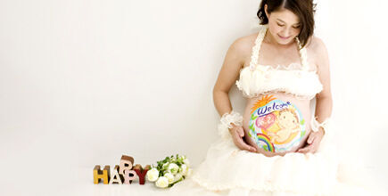 一生に一度のプレママタイムを形に残すお手伝い♪赤ちゃんへの思いやご夫婦の思い出、好きなモチーフをプロの専属ペインターがお腹にペインティングして記念撮影します。(約10分)[当日予約制、人数限定]