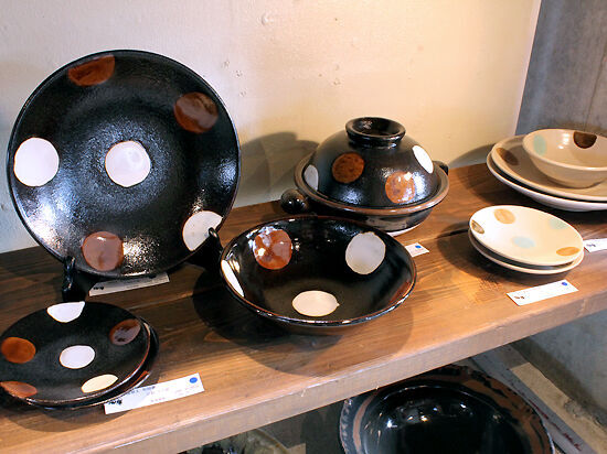 県内外からたくさんの人が訪れる陶器のまち「益子」。伝統とモダンが融合した陶器や雑貨が並ぶ陶庫(益子)から、大きめの3色のドットが印象的な、益子伝統釉薬の色を活かした大きめのマグ。ほっこり、暖かい陶器の温もりを感じてみて。