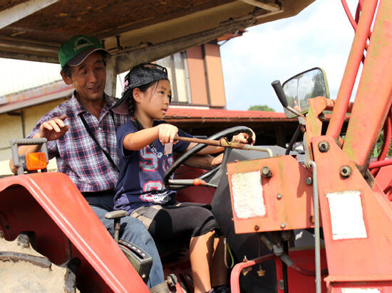 2ヘクタールもある畑と0.6ヘクタールの水田で様々な農作物を育てている山崎さん。農園を見学しながら農作物の栽培の大変さや、農作業のコツや工夫のお話を聞きました。さらに!畑で活躍する大きなトラクターについても教えてもらい、動かすまでを体験しました。