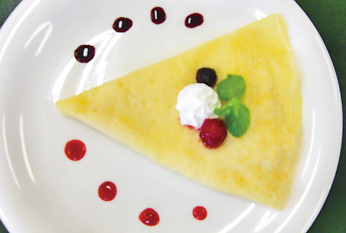 もっちり細やかなクレープ生地に、直営農園で大切に育てたブルーベリーとラズベリーで作った甘さ控えめのソースと、生クリーム、カスタードクリームを添えたクレープ。三位一体となって、やさしいハーモニーを奏でます。そのほか、季節の果物を楽しめるクレープいろいろ☆