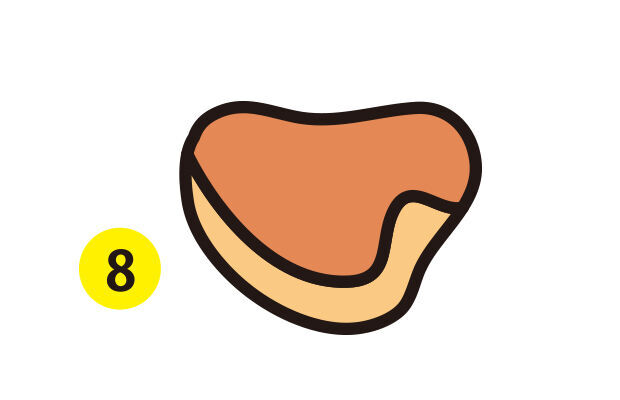 いくつ知ってる?鶏肉の部位を学ぼう! 手羽先、手羽元 (1)の手羽先は、脂肪やコラーゲンを多く含んでいて、お肉の部分は少なめ。 (2)の手羽元は、手羽先よりも脂肪が少ないのであっさり。コクのある味わいが人気! むね肉 低カロリーで高たんぱく!臭みがなく、淡泊な味わいなので、様々な料理に使うことができる。油との相性◎! もも肉 足の付け根部分であるもも肉は、脂肪が多い赤身肉。むね肉と比べると肉質は固め。味にコクがあるのが特徴。 ささみ むね肉の一部で、胸骨に沿って付いている。鶏肉の中で、もっとも脂肪分が少なく、たんぱく質が多い。味は淡泊。 こにく せせりと呼ばれる、首の肉。一羽からわずかしか取れない希少部位。身が引き締まっていて歯ごたえがあり、旨味も強い。 皮 脂肪分とコラーゲンが豊富。鶏皮ならではの、独特の食感が特徴で、好き嫌いがはっきり分かれる部位。濃厚な味わい。 はらみ 内臓を覆う腹壁。弾力があり、程よく脂がのっていてジューシー。1羽から少量しかとれない希少な部位。 心臓 「ハツ」や「ハート」とも呼ばれる心臓。筋肉が発達しているため、食べたときのプリプリとした弾力が特徴。 肝臓 通称「レバー」。ビタミンや鉄分などの栄養価が高い部位としても有名。ねっとりとした食感で、独特な味わい。 砂肝 食べたものを砂粒ですり潰して食べる、鶏ならではの部位。脂肪分はほとんどなく、コリコリとした歯ごたえ。 もつ その他の可食内臓。流通量は少ない。体内で成長途中の、数珠状に繋がっている卵は「キンカン」と呼ばれる。 軟骨 関節部。胸骨の先端は「やげん」、膝は「げんこつ」と呼ばれている。コリコリとした歯ごたえのある食感。 ツイート ※掲載内容は取材時の情報です。 いろどりダイニング いざ酔 特集トップ 編集後記