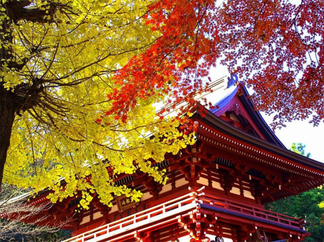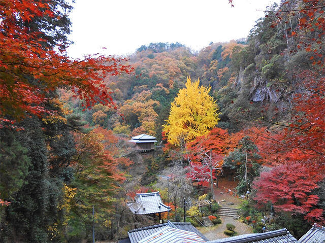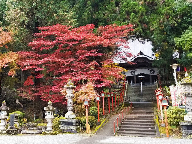 岩肌を出した岩船山山頂に建てられ、600段の階段を登ると関東平野が一望!境内には美しい紅葉が見られ参拝者が多く訪れます。