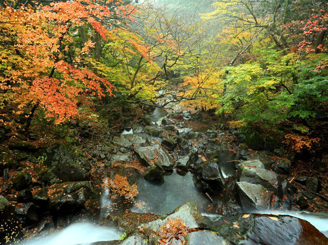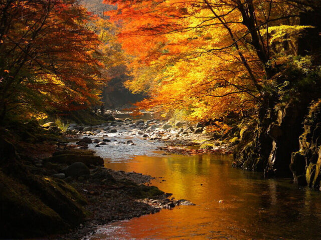 手つかずの渓谷には広葉樹が広がり、大小20余りの滝もあります。秋には豊かな彩とともに瀑布と清流をお楽しみください。