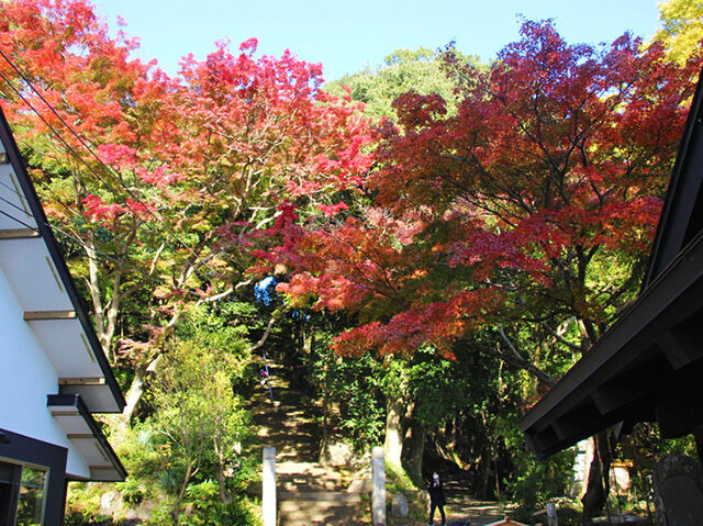 厳かな雰囲気漂う凛とした空気感。参道から本堂まで鮮やかな紅葉の中をゆっくりとお散歩しながらベストショットを狙ってみて!