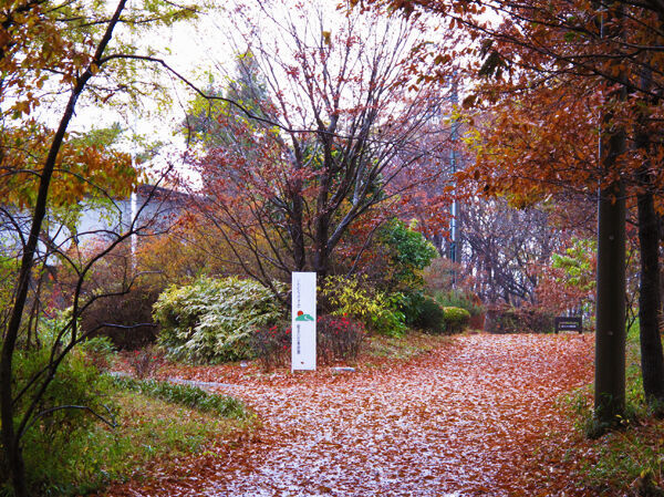 コナラ、クリ、ヤマザクラなど広葉樹が広がる里山林にある約4㎞の散策路や芝生広場、吊り橋、展望塔などが整備されています。
