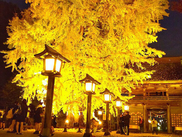 恋愛成就のご利益がある樹齢700年の大銀杏。ライトアップ期間もありますのでお見逃しなく!