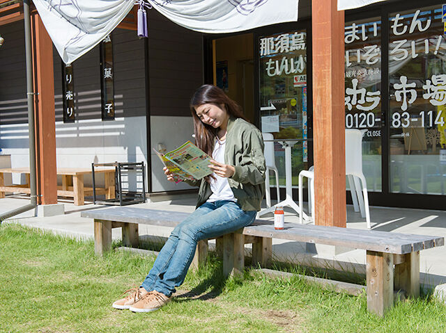 印象的なデザインの建物は、那須烏山の高瀬地区で発見された化石、大金くじらがモチーフになっています。中に入ると、柔らかで甘みのある肉質が特徴の烏山山あげ牛をはじめ、名産品やハンドメイドアイテムが並びます。