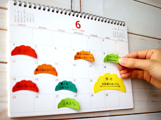 餃子のカタチのかわいいふせんは、そのまま貼るだけでも、ちょっとメッセージを書いてもOK。5色のカラーと大&小2つのサイズで、いろんなシーンに使えそう!