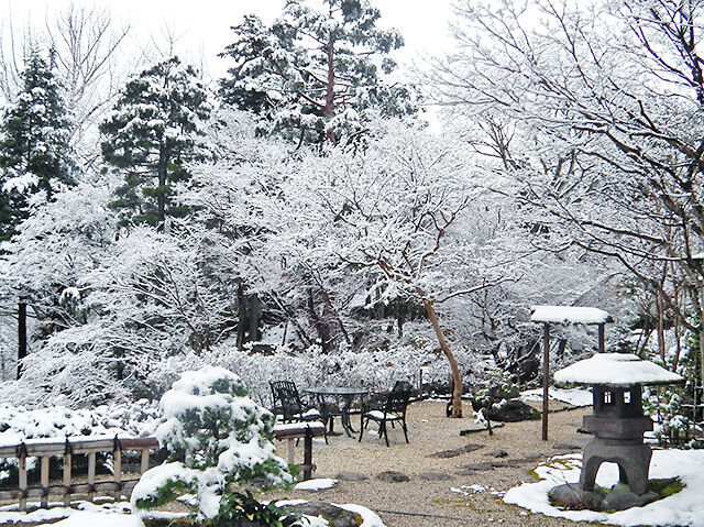 昼は太陽の温かな光に包まれ、夜はライトアップされた庭園を眺めながら、ゆったりとお食事ができます。8名まで入れる個室もあります。