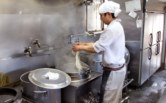 11:00、13:00、14:00という行列のピークがあり、約25人で入れ替わり回転している。1日2~3回の行う麺打ちでは、1回約70人前仕上げているそう。木曜と金曜のお昼頃を狙うと、長蛇の列に並ばなくてもイイ可能性が!