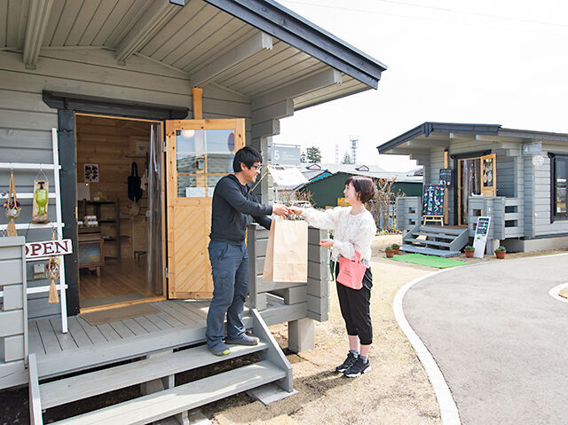 駅前広場のオシャレな創業支援施設。予約すれば音楽レッスンもできる楽器屋さん「デラックスケーブル」やオリジナル刺繍小物が作れる「ししゅうkabu」、ワークショップも人気の「spiel(シュピール)」、など個性豊かなお店が集まります。