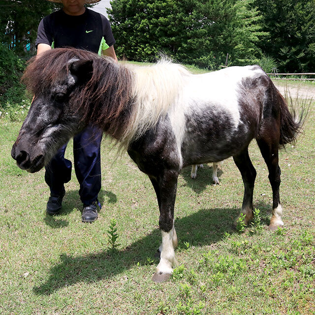 23歳になる、血統書付きのシェットランドポニー。人間なら90歳くらいのおばあちゃん。広々とした敷地で、毎日の~んびりと暮らしている。