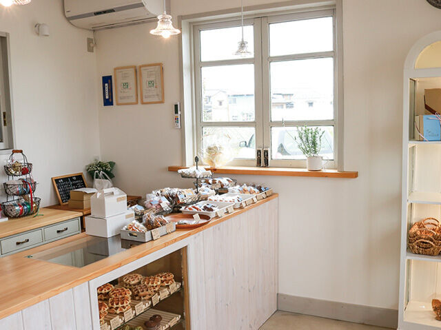 白を基調としたカワイイ雰囲気の店内には、外を眺められるカウンター席。ワッフルやスコーンはイートインならサッと温めてだしてくれますよ!雨宿りに座ってみるとすごく居心地がよくて、雨がもう少し降り続いてくれないかな…なんて考えちゃうかも。