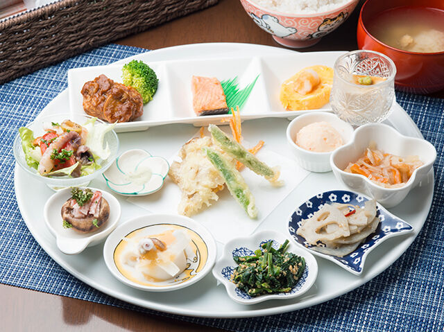 ヘルシーな国産素材にこだわり、色とりどりの自家製おかずをちょっとずつ味わえるのが嬉しい!小皿をよ〜く見てみて。ここにもネコちゃんが隠れていますよ。