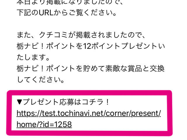 【2】「クチコミ掲載のお知らせ」メールが届いたら、プレゼントの応募URLをクリック。※記事からも応募可。