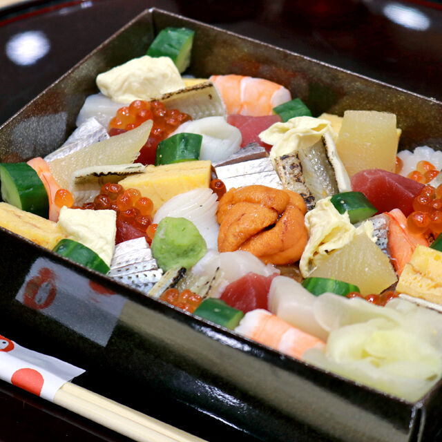 数の子に玉子、ウニのLRTカラーにエビやあなご、コハダ、イカ、まぐろ、いくらで彩りをプラス。かんぴょうや日光ゆばで栃木感も満載!活気あふれる職人さんが握った江戸前寿司で旬のネタも楽しめるよ★