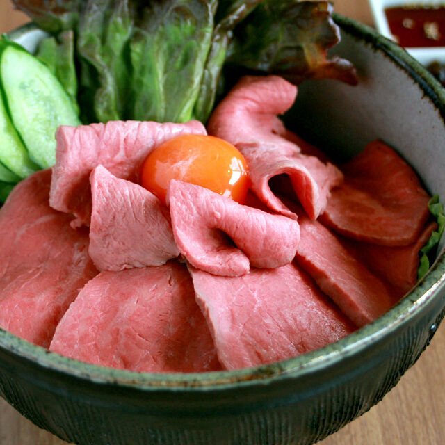 上質な牛ロース肉の表面を炙り低温調理したお肉たっぷりの贅沢丼。宇都宮東口から最寄駅テクノポリスセンター西までの10.47kmにちなんだスペシャルプライス!家族連れも多いコチラにはキッズメニューも豊富♪
