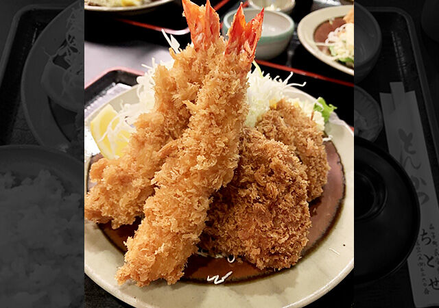 エビの尻尾を見れば丁寧な仕事が伺えます( ✧Д✧)キラーン!そしてヒレカツとのコンビネーション…サイコーです♪