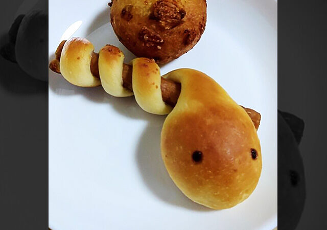 その名は【へびさん】1番のかわい子ちゃんを連れて帰りました( ˘ ³˘)もう1つはお馴染みのもっちり食感がたまらない【えだ豆チーズ】どちらも翌朝の娘の朝食にと思い購入しました。翌朝は金曜日!!!へびさんのパンでほっこり( ◜‿◝ )して仕事のラストスパート頑張ってほしいと、母は思います!!!ラインで¥100引きして下さいました。嬉しいサービスです。(2021/05/27 訪問)