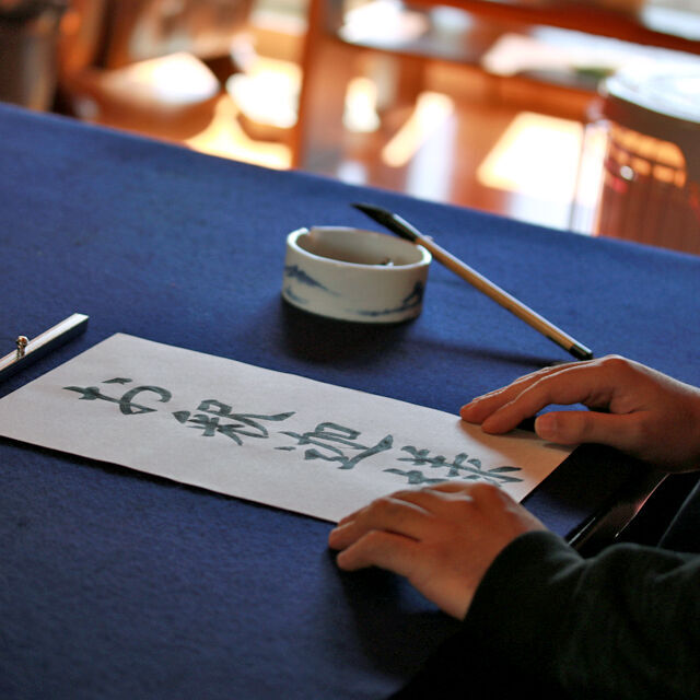 お寺の書道教室では、超達筆な副住職が優しく丁寧に教えてくれます。花まつりの時期に桜を愛でながらJAZZコンサートも楽しめます!