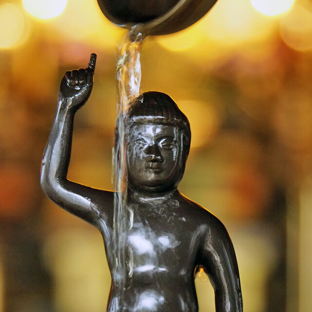 【MEMO】誕生仏に甘茶をかけて、体を洗い清め、子どもの身体健全などの成就を願います。