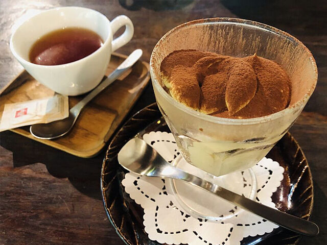 初訪問から4年近く念願のひとりカフェがようやく実現しました。16時過ぎにお邪魔して残っていたケーキは、チーズケーキとショコラとこちらのモンブランタルトの3種類!アイスミルクティーと共に2階席でドリンク…