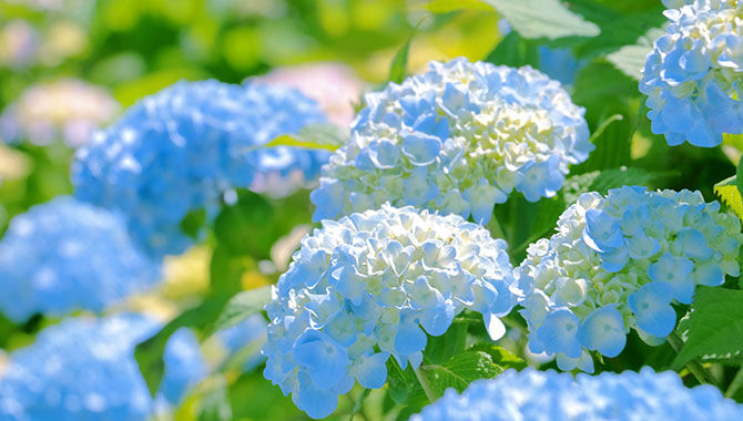 鬼怒川公園周辺では青い西洋アジサイを観ることができます。場所によってはピンクや白いアジサイも見つけられるかもしれません。(画像はイメージです)