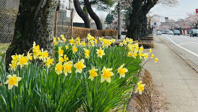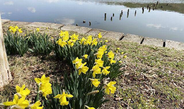 春は桜の名所。開花時期にはライトアップされ、多くの観光客が賑わいますが、道路からすぐの場所には水仙が綺麗に咲き誇ります!(撮影:コーちゃんさん)