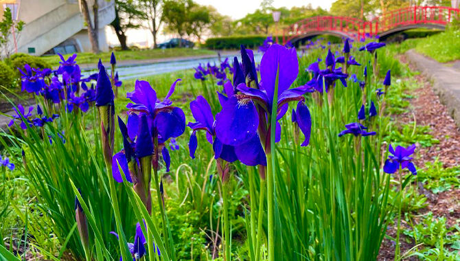 約40万㎡の敷地に、様々な花が咲き、草花・庭木が盛りだくさんです。季節の花やイベントを楽しんだり、造園・園芸用資材・苗の販売、展示会もしている花木センターには、アヤメも咲いています。(画像はイメージです)
